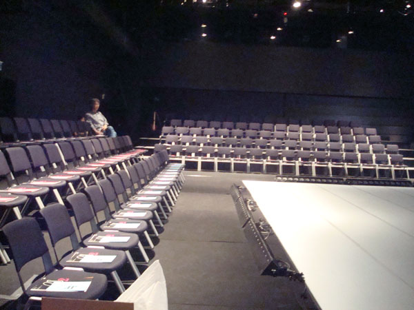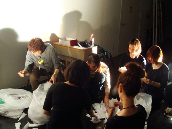 開場前のひと仕事。舞台の袖のすみっこにて。わいわい。